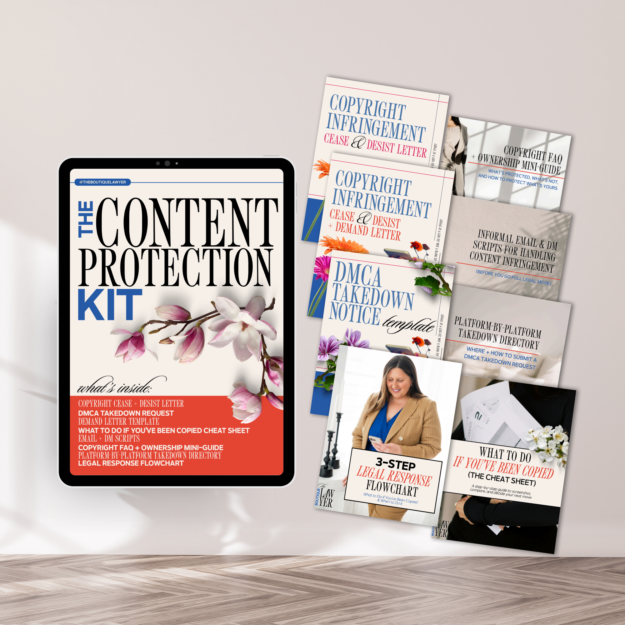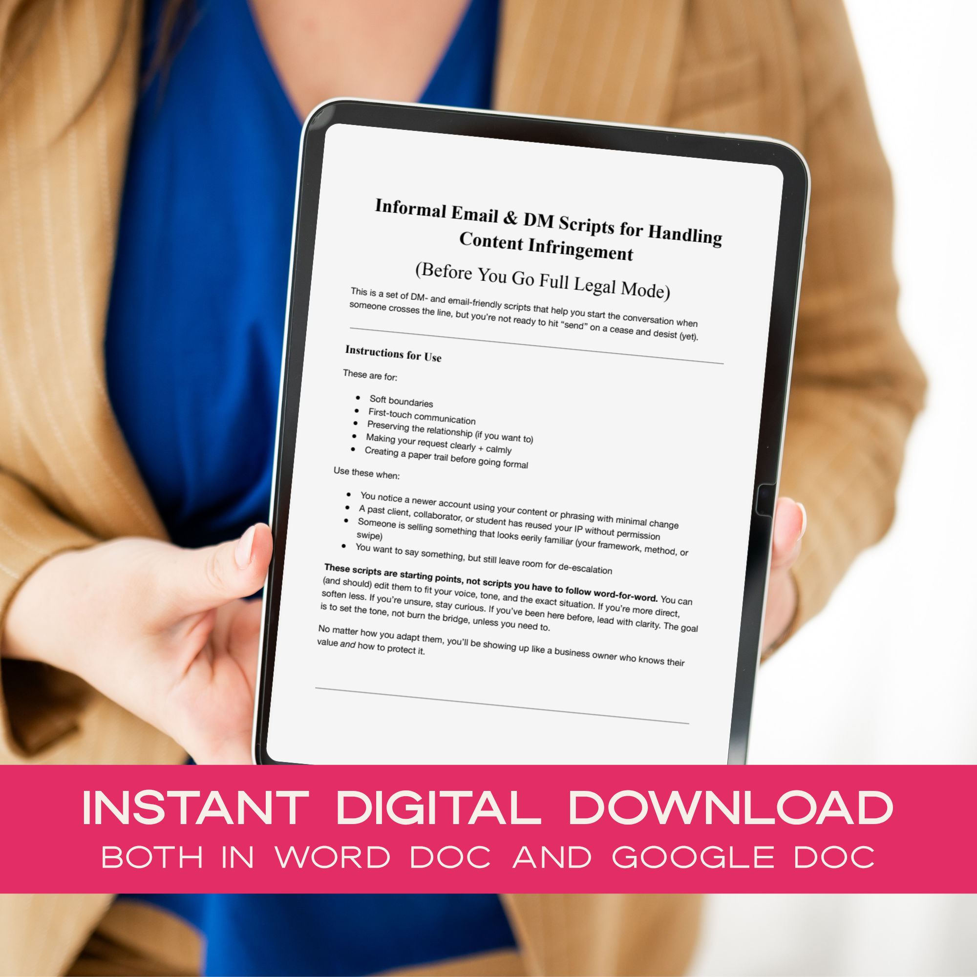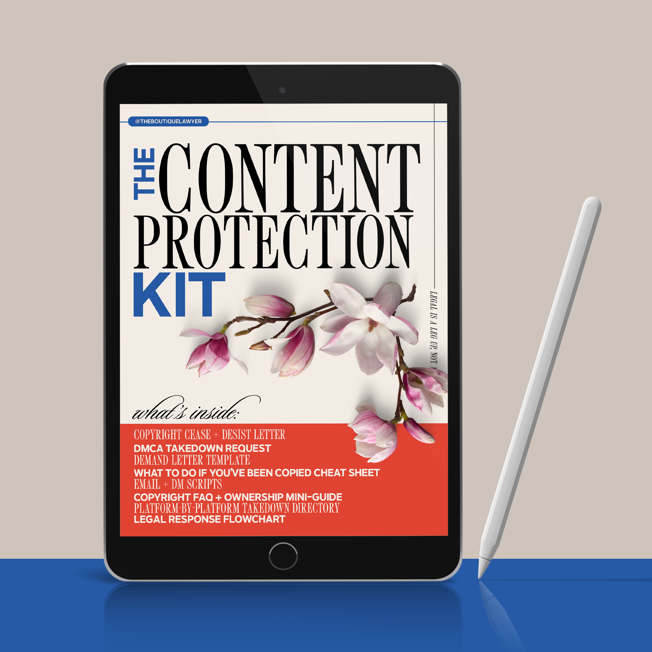 Whether it’s your website copy, course curriculum, Instagram caption, or a full digital product, this kit gives you the tools to respond quickly, professionally, and calmly when someone crosses the line.